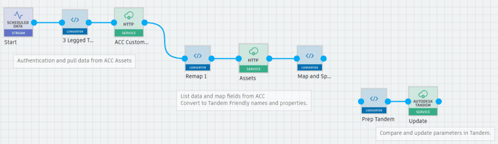 Tandem Connect is a low-code integration tool that links near-real-time project data to an owner’s existing systems—without the need for custom backend development. Mason has built plenty of integrations from scratch, but he chooses Tandem Connect for speed and simplicity. “If I had to integrate Tandem with ACC manually, it would take me five to ten times longer than using Tandem Connect,” he explained.